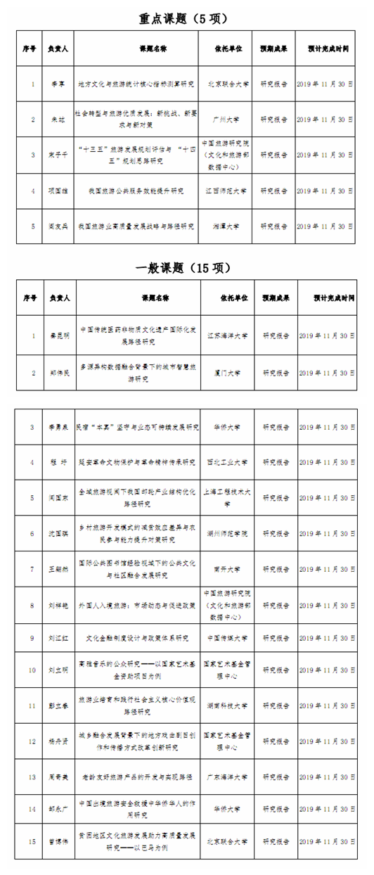 经批准,现公布2019年文化和旅游部宏观决策课题立项名单。