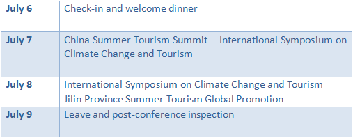 7月7日上午开幕式及避暑旅游、吉林省避暑气候舒适度等学术报告发布,下午避暑旅游圆桌论坛。