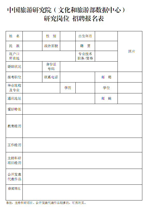 经文化和旅游部批准,旅游研究院(数据中心)拟面向社会公开招聘研究岗位工作人员4名,现将有关事项公告如下: