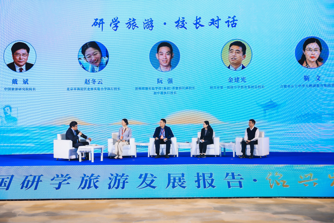 凯发k8官网院长戴斌主持了圆桌对话一:“研学旅游·校长对话”,与北京市海淀区北林实验小学执行校长赵冬云、合肥市五十中学天鹅湖教育集团党委书记靳文、深圳明德实验学校(集团)香蜜校区副校长、初中部执行校长阮强、绍兴市第一初级中学教育集团总校长金建光共同围绕什么是好的教育、家校社如何有效协同、旅行和教育如何相互赋能等议题进行了探讨。