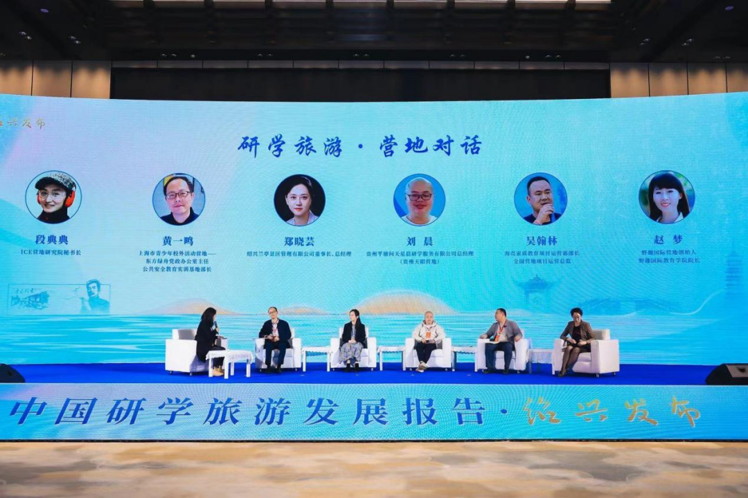 最后,由ICE营地研究院秘书长段典典主持圆桌对话二“研学旅游·营地对话”,围绕我国研学营地建设与开展,与上海市青少年校外活动营地—东方绿舟党政办公室主任、公共安全教育实训基地部长黄一鸣、绍兴兰亭景区管理有限公司董事长、总经理郑晓芸、贵州平塘问天星晨研学服务有限公司总经理刘晨、海亮素质教育项目运营部部长、全国营地项目运营总监吴翰林、野趣国际营地创始人、野趣国际教育学院院长赵梦展开了广泛讨论。作为中国研学旅游领域高站位、全局性、陆续在性的发布活动,“中国研学旅游开展报告·绍兴发布”会议正逐步积累起智库品牌效应。此次会议也受到央广网、人民日报、新华网等20多家主流媒体关注与报道,吸引了来自政企产学研等各界人士的普遍关注,多主体的共同参与将进一步有助于我国研学旅游市场坚实而高质量地开展。